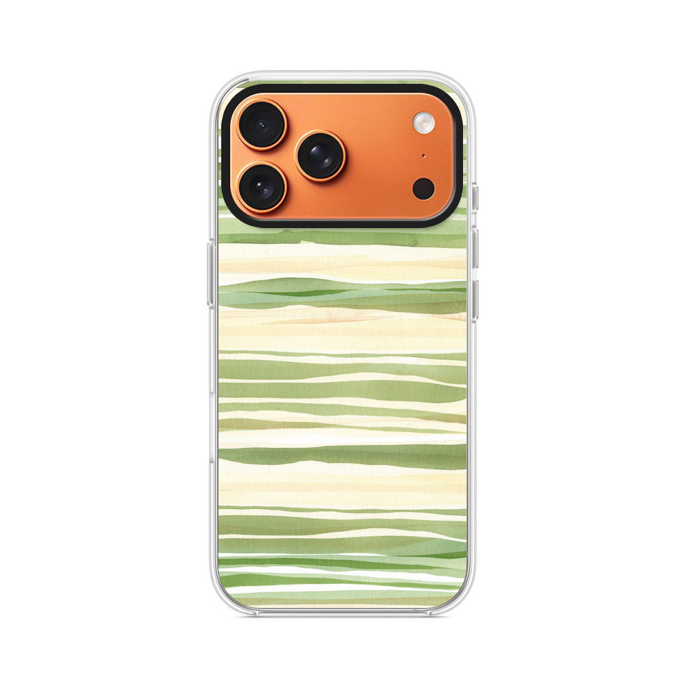 ケースはスリムで、スマートフォンを保護しながら、緑のストライプデザインとApple iPhone 17 Pro Maxの自然な美しさを引き立てます。Apple iPhone 17 Pro Maxケースの周囲にエアバッグ設計が施されており、耐衝撃保護を提供します。