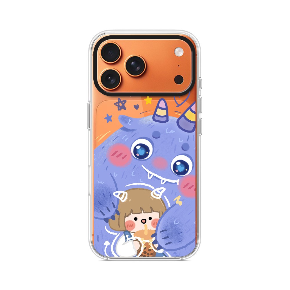 ケースはスリムで、スマートフォンを保護しながら、タピオカを飲む少女とモンスターデザインとApple iPhone 17 Pro Maxの自然な美しさを引き立てます。Apple iPhone 17 Pro Maxケースの周囲にエアバッグ設計が施されており、耐衝撃保護を提供します。
