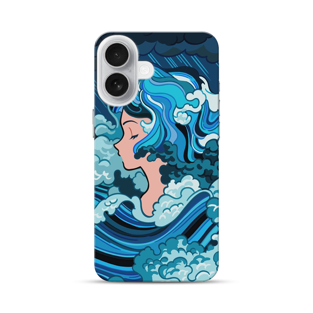 雨と波の女性のイラスト