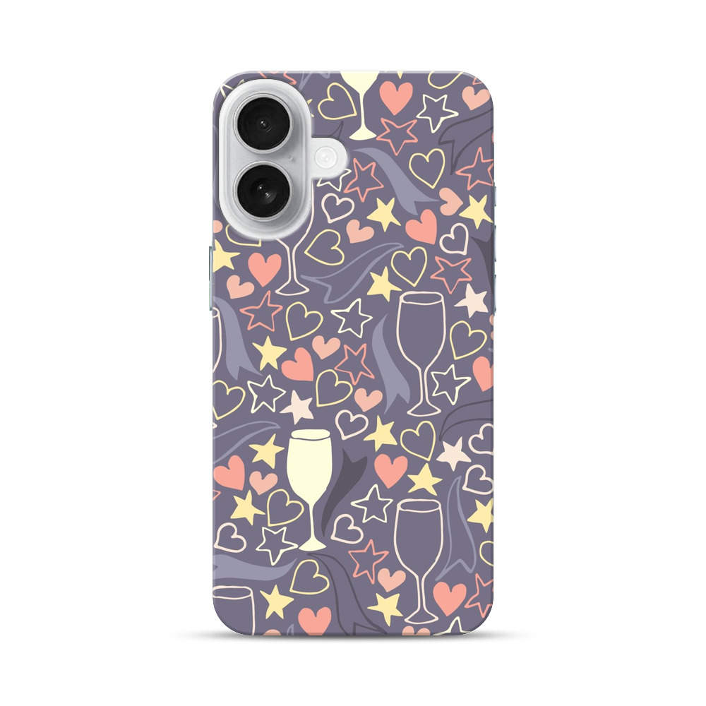 ハートと星とシャンパングラスのパターン