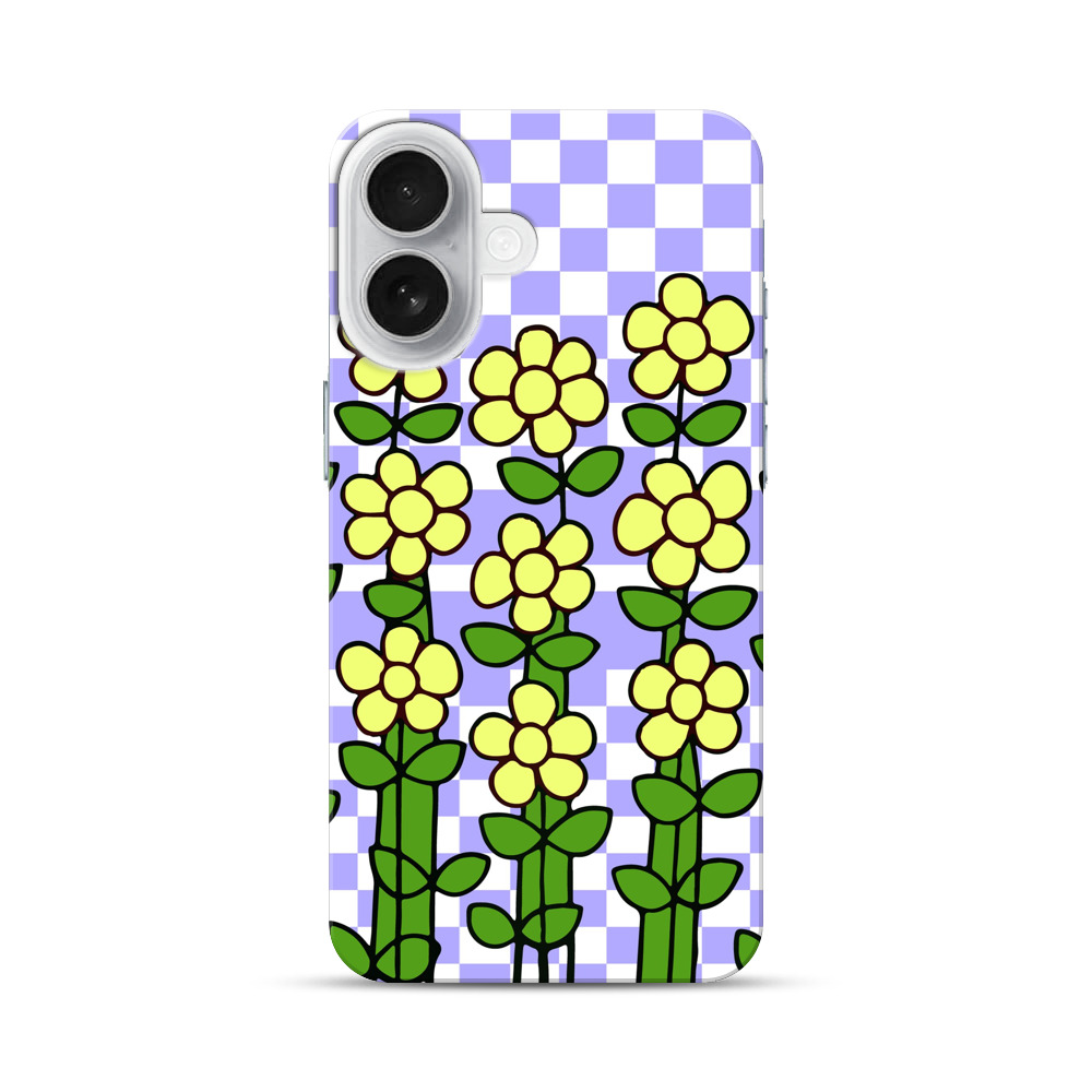 黄色い花とチェッカーボード背景