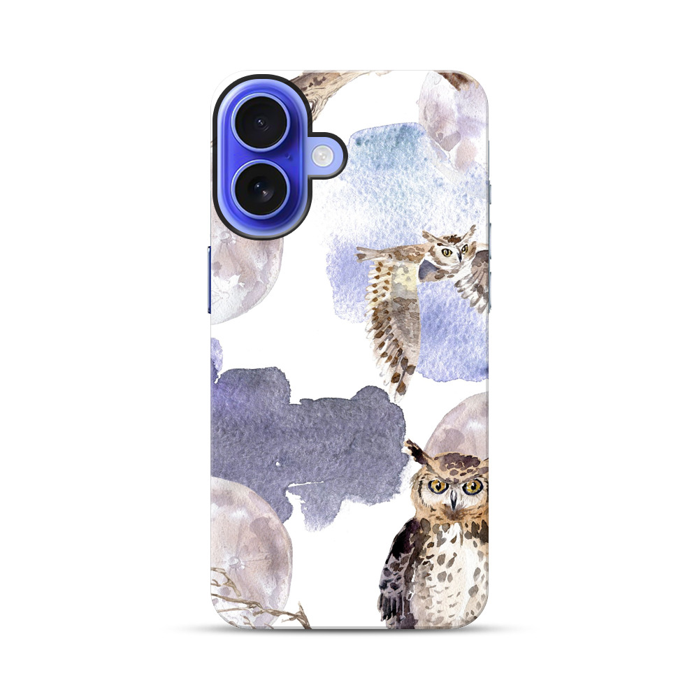 フクロウと月の水彩画