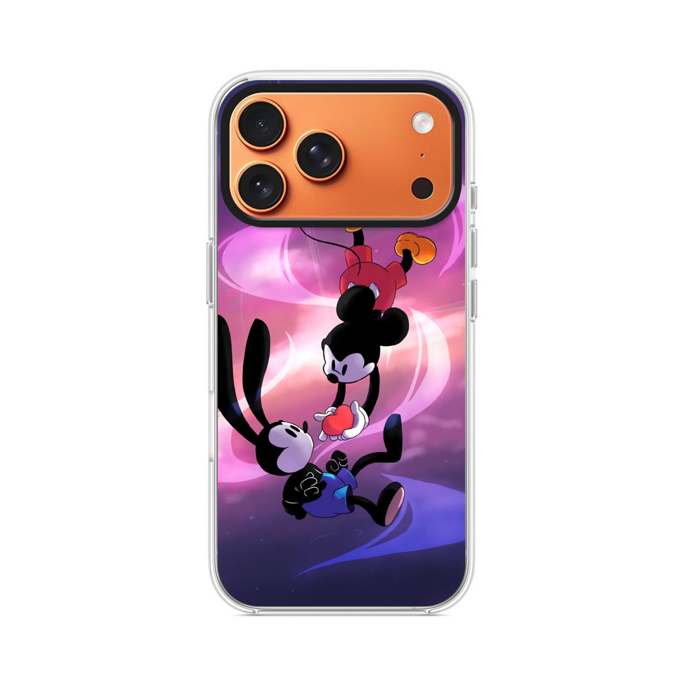 ケースはスリムで、スマートフォンを保護しながら、ミッキーとオズワルドのハートデザインとApple iPhone 17 Pro Maxの自然な美しさを引き立てます。Apple iPhone 17 Pro Maxケースの周囲にエアバッグ設計が施されており、耐衝撃保護を提供します。