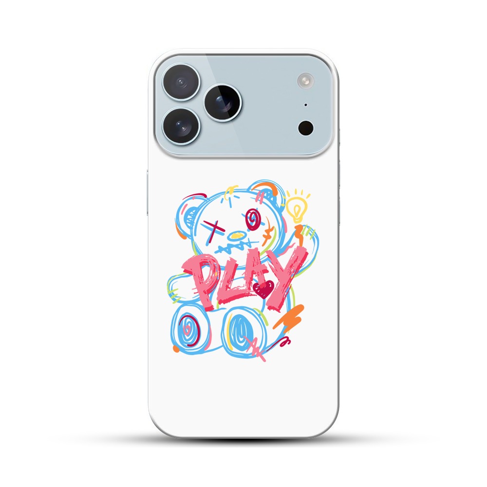 カラフルなクマとプレイの文字