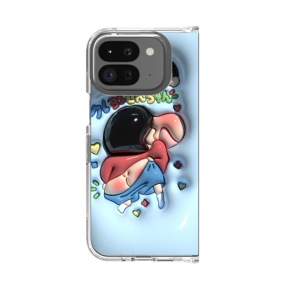 ケースはスリムで、スマートフォンを保護しながら、クレヨンしんちゃんのポーズデザインとGoogle Pixel 9 Pro Foldの自然な美しさを引き立てます。Google Pixel 9 Pro Foldケースの周囲にエアバッグ設計が施されており、耐衝撃保護を提供します。